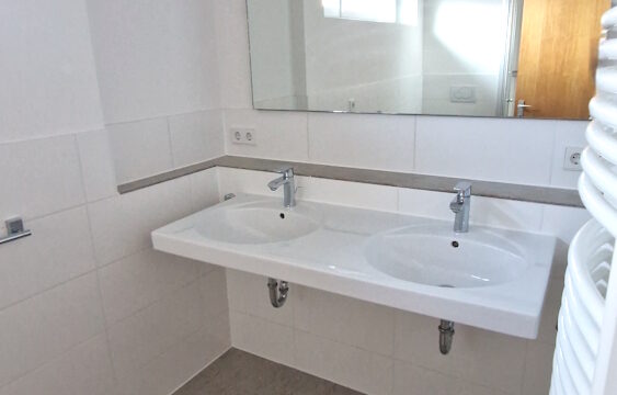 Im 1. Obergeschoss überzeugt eine durchdachte Raumaufteilung mit Elternschlafzimmer, einem modernen Duschbad mit Doppelwaschtisch und Tageslicht sowie einem großzügigen Kinderzimmer mit eigenem Balkon, das sich bei Bedarf in zwei separate Zimmer unterteilen lässt.