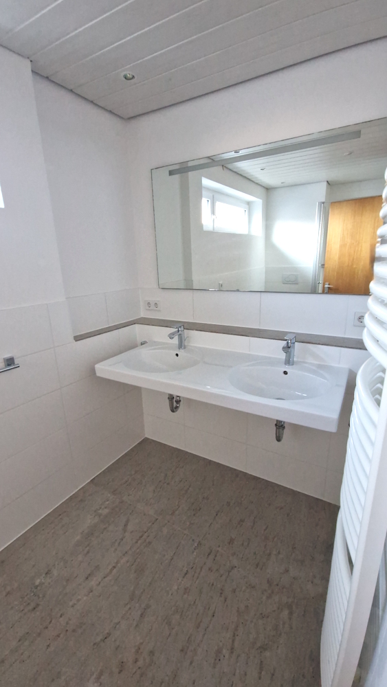 Im 1. Obergeschoss überzeugt eine durchdachte Raumaufteilung mit Elternschlafzimmer, einem modernen Duschbad mit Doppelwaschtisch und Tageslicht sowie einem großzügigen Kinderzimmer mit eigenem Balkon, das sich bei Bedarf in zwei separate Zimmer unterteilen lässt.