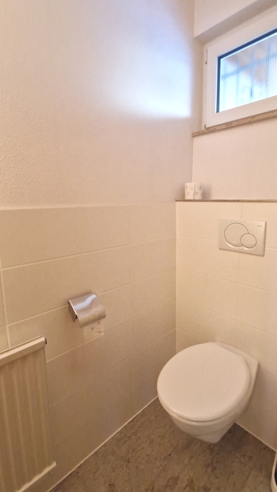 Im Erdgeschoss erwartet Sie eine klassische und zugleich funktionale Raumaufteilung: Eine Gästetoilette befindet sich direkt im Eingangsbereich. Die Küche ist mit einer modernen Einbauküche ausgestattet und kann auf Wunsch offen gestaltet werden. Das großzügige Wohnzimmer mit knapp 30 m² bildet das Herzstück des Hauses und bietet direkten Zugang zur schönen, südlich ausgerichteten Terrasse mit Pergola.