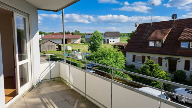 Vom Wohnzimmer aus gelangen Sie direkt auf den großzügigen, teilüberdachten Südbalkon, der ausreichend Platz bietet, um sonnige Stunden in angenehmer Atmosphäre zu genießen und den Feierabend entspannt ausklingen zu lassen.